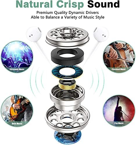 Earbuds Headphones 5 in One Pack, Wired Earbud with Heavy Bass Stereo Noise Blocking, Microphone, Compatible with iPhone, Android Phones, Laptops, Computers, iPad or Any Device with 3.5mm Interface