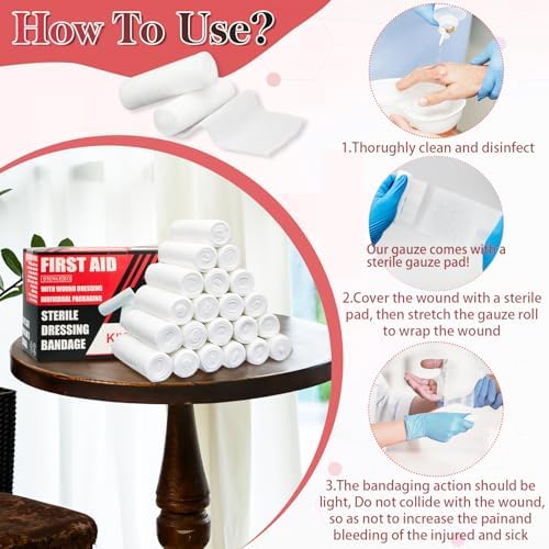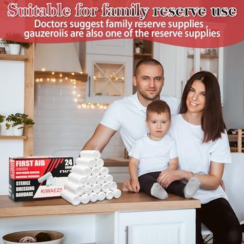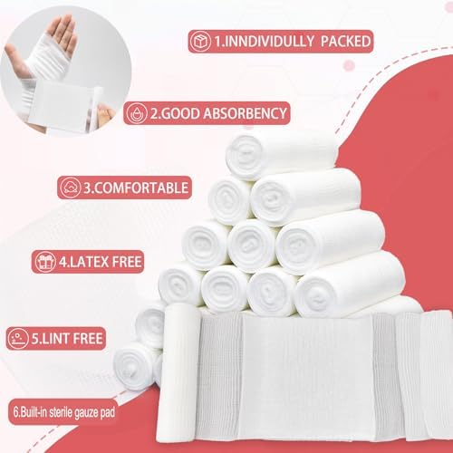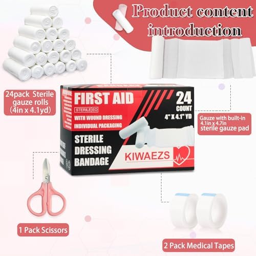 24 Pack Sterile Gauze Rolls Bandages, 4in x 4.1 yd (with Large sterile Gauze pad), Professional Wound Care Latex-Free Elastic Bandage, Wound Care Supplies,Medical Supplies, First aid Supplies.