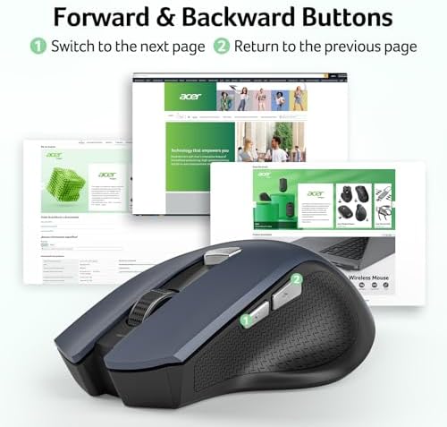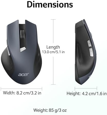 acer Wireless Mouse for Laptop, 2.4GHz Computer Mouse 3 Adjustable DPI Office Cordless USB Mice with USBA Receiver, 6 Buttons, 1600 DPI, Medium to Large Sized Hands Compatible with PC, Laptop, Desktop
