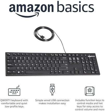 Amazon Basics Wired QWERTY Keyboard, Full-Sized, Black