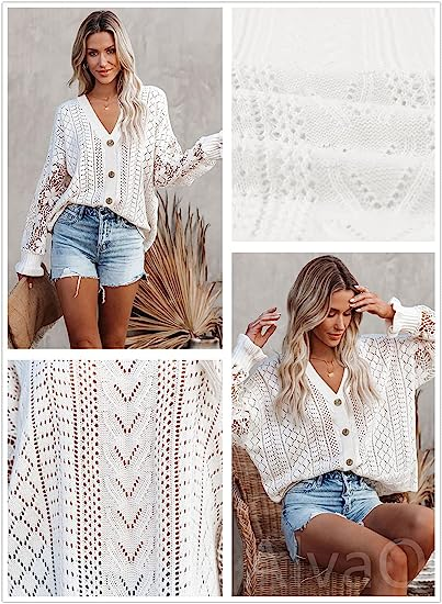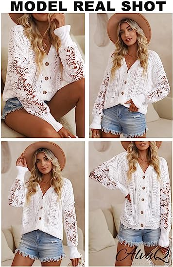 AlvaQ Womens Lightweight Lace Crochet Cardigan Sweater Kimonos Casual Oversized Open Front Button Down Knit Outwear