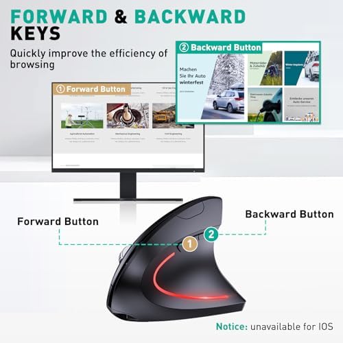 Bluetooth and 2.4G (2-in-1) Rechargeable Wireless Mouse, Ergonomic Vertical Design, 1000/1200/1600 DPI, 6 Silent Buttons, for Laptop, Computer, PC, MacBook, Chromebook-Black
