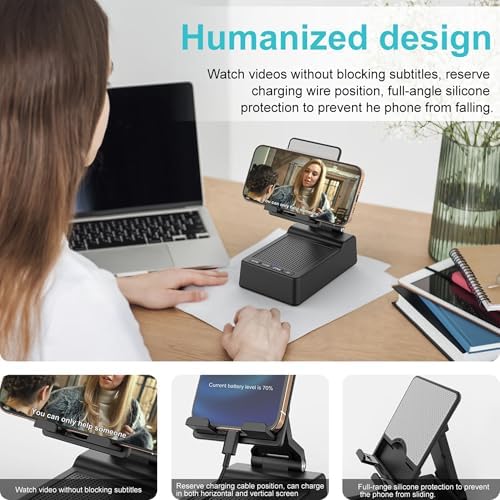 Cell Phone Stand with Wireless Bluetooth Speaker Adjustable Phone Holder Anti-Slip Base HD Surround Sound for Home Desk and Outdoors Compatible for Mobile Phone & Tablets