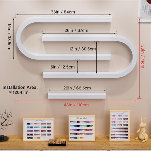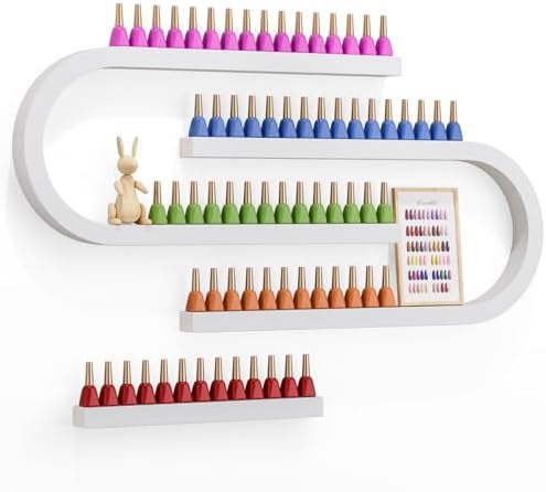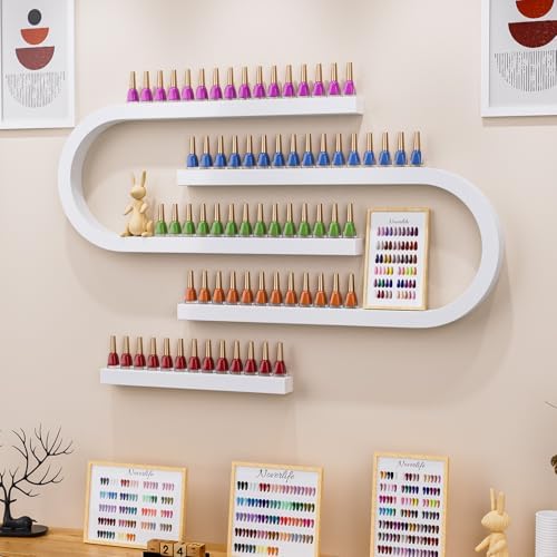 Noverlife 3 Packs U Shape Nail Polish Wall Rack, Metal Nail Polish Organizer Wall Nail Polish Shelves, 5 Tiers Nail Polish Wall Display Makeups Lipstick Perfume Wall Shelf for Home Spas Nail Salon
