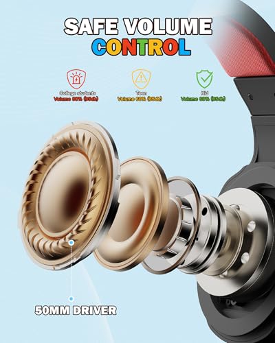 NUBWO U3 Gaming Headset with Microphone, Safe Volume Limited, Kids Headphones for Switch, Super Lightweight, Rich Sound, 3.5mm Jack for NS, PS4, PS5, Xbox, Tablet, iPad Computer, Red