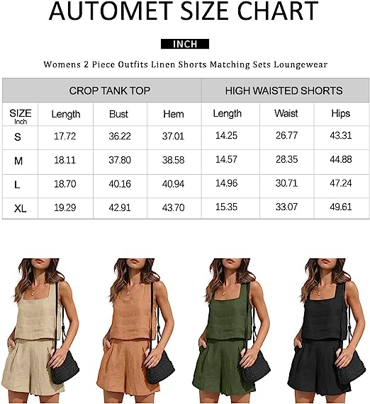AUTOMET Womens 2 Piece Outfits Lounge Matching Sets Two Piece Linen Shorts Crop Tops 2023 Trendy Clothes Summer Vacation Set