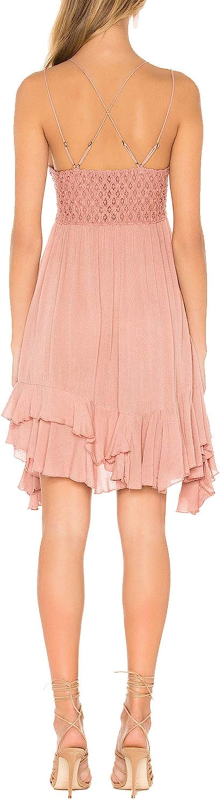 EXLURA Women's Tie Back Square Neck Short Puff Sleeve Casual Dresses A Line Sundress Mini Dress