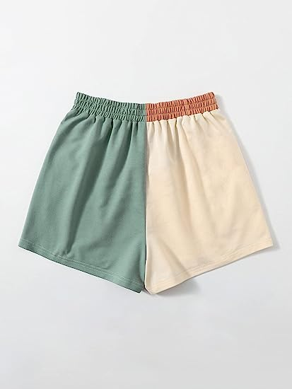 SOLY HUX Women's Casual Elastic Shorts Running High Waisted Color Block Sweat Shorts with Pockets