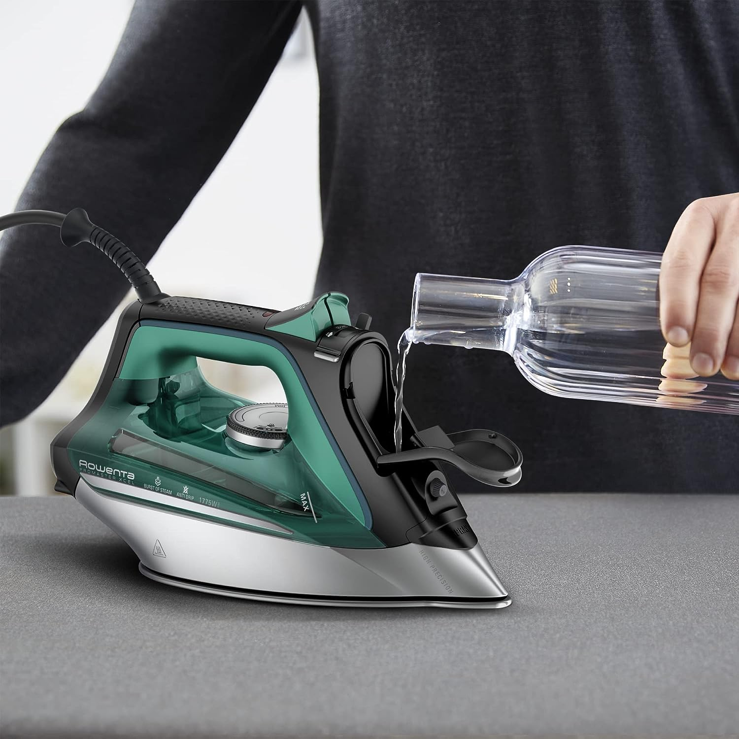 Rowenta Pro Master Stainless Steel Soleplate Steam Iron for Clothes 400 Microsteam Holes, Cotton, Wool, Poly, Silk, Linen, Nylon 1775 Watts Ironing, Garment Steamer, Powerful Steam DW8360