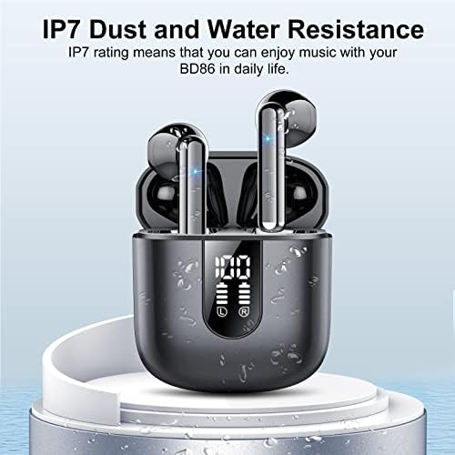Wireless Earbuds 2024 Bluetooth 5.3 Headphones with HD Mic HiFi Stereo Sound, Wireless Earphones with Dual LED Display Touch Control, IPX7 Waterproof 30H Playtime Mini Ear Buds for iOS Android, Black